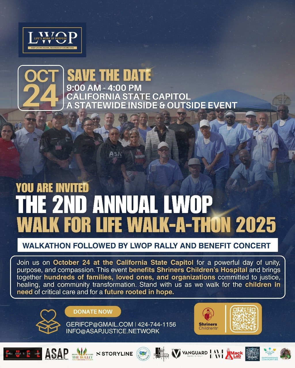 Scheduled for October 8, 2025, this second annual event will be conducted in partnership with Valley State Prison’s 2nd Chance 2 Society Wellness Group and supported by the Anti-Violence Safety and Accountability Project (ASAP), Storyline Media Group, LLC., The Davis Vanguard, IAM Consulting, MackLab’s, Rising Beyond The Bullet, and Families United to End Life Without (FUEL). A parallel walkathon program and community EXPO will be held at the California State Capitol in Sacramento to extend the event’s positive impact and public visibility.