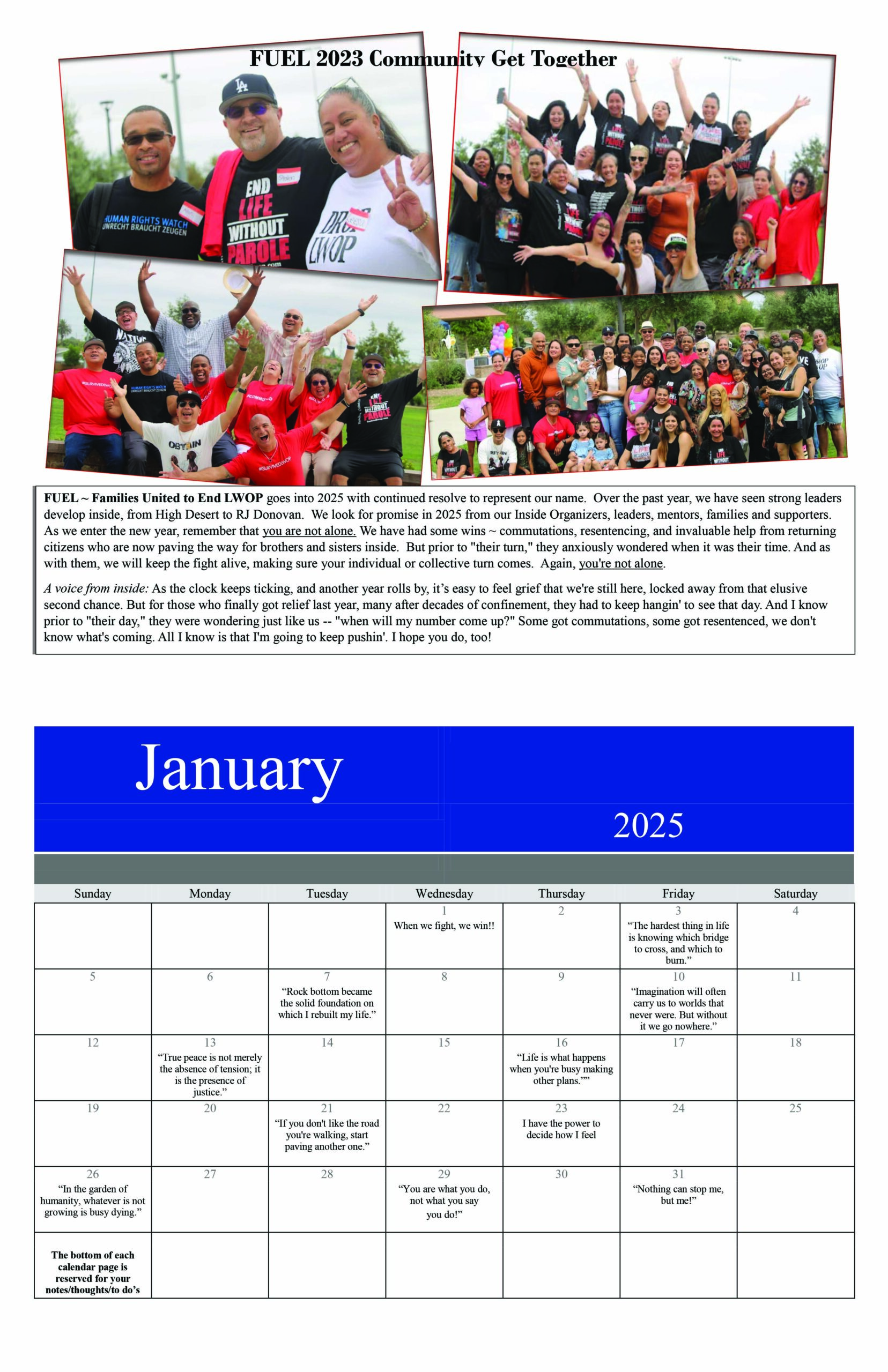 The 2025 FUEL Calendar contains the artwork, the beauty, and the hope of men serving Life Without Parole.